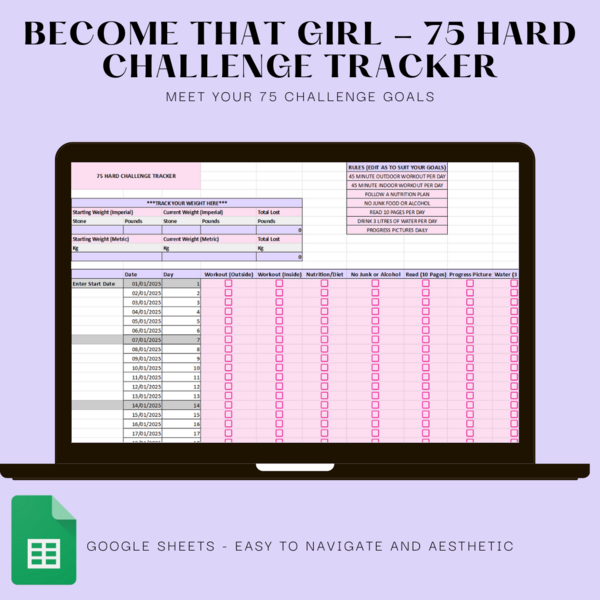 75 Hard Challenge Tracker - Make A Copy and Add your Own Edits on Google Sheets
